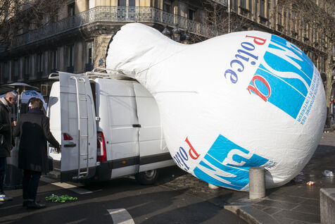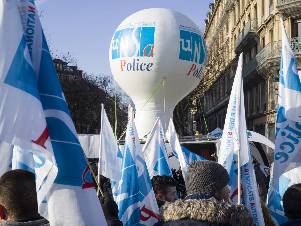 DES POLICIERS MANIFESTENT DEVANT L'HOTEL DE VILLE
