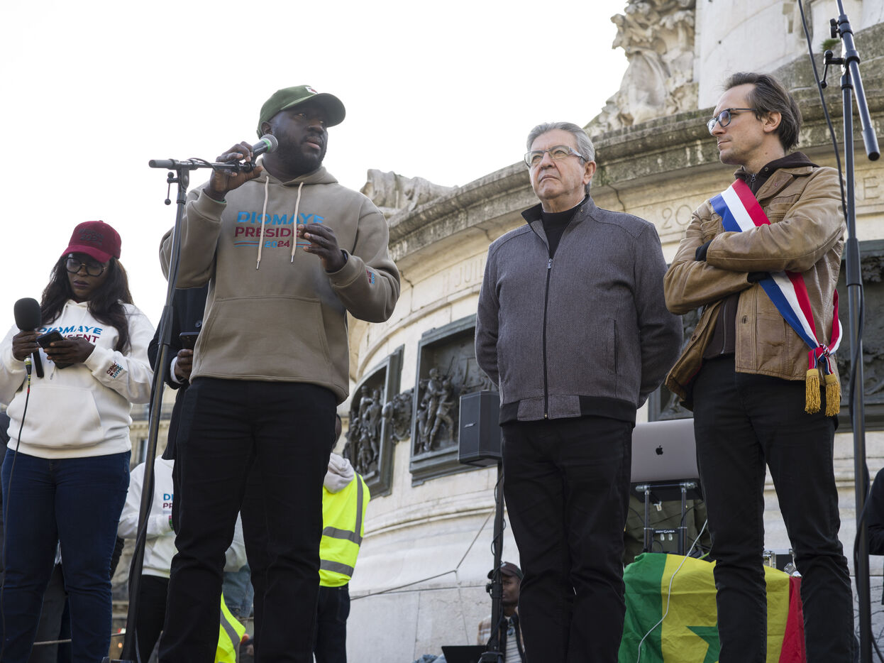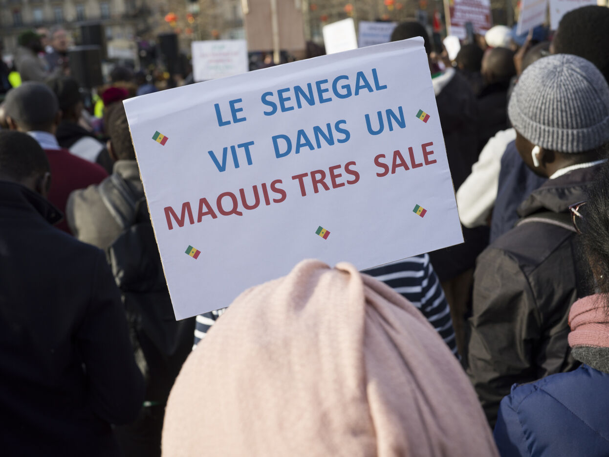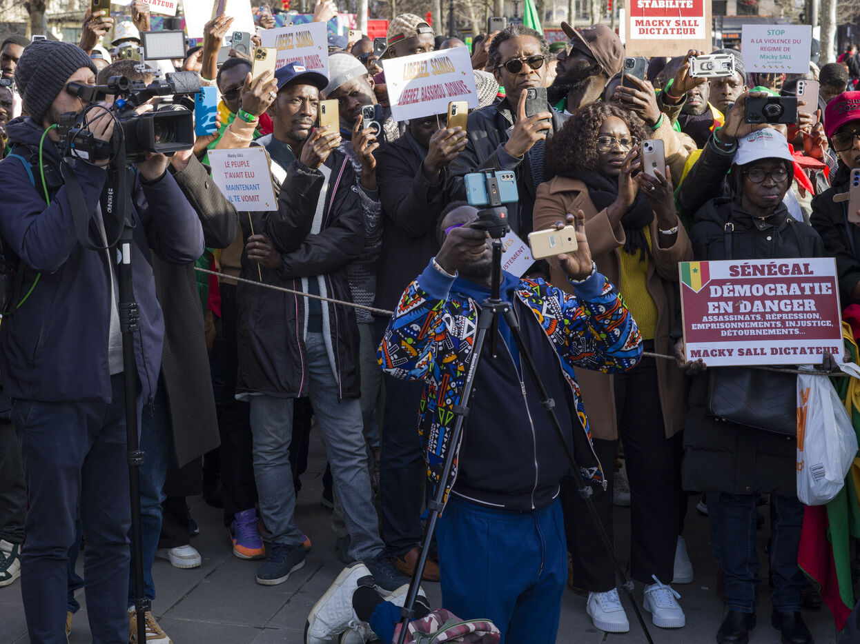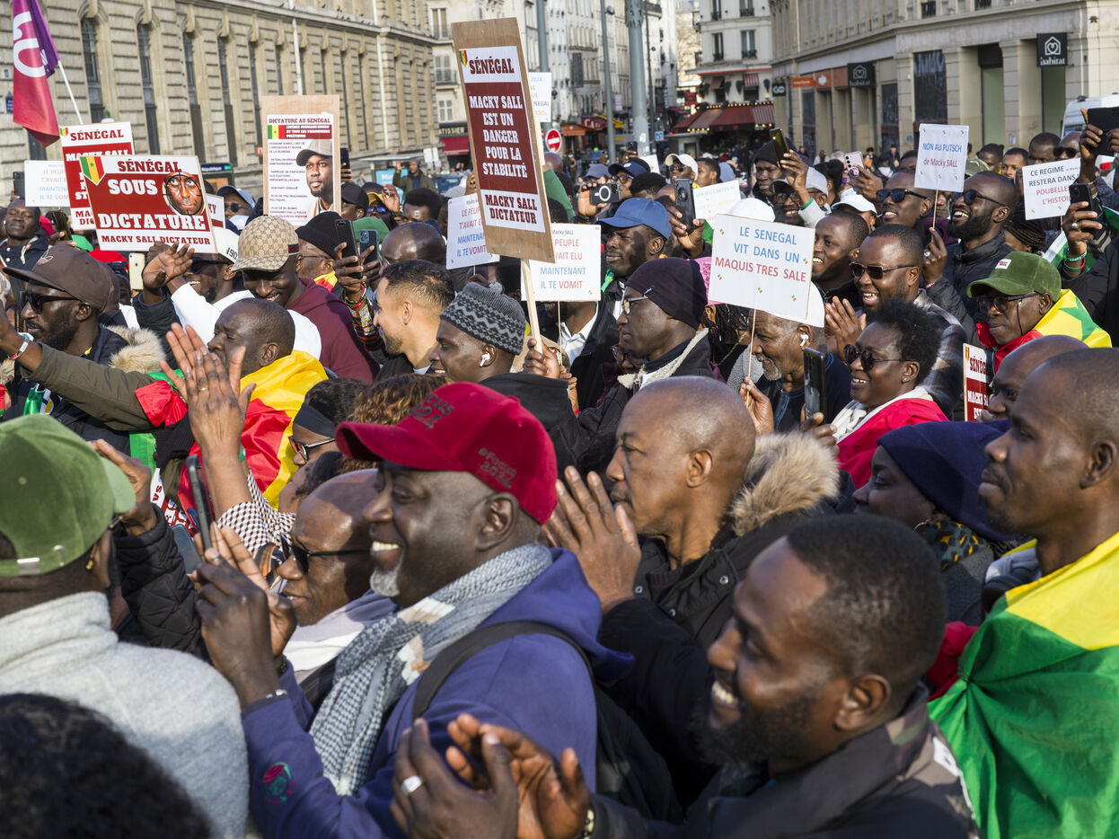 Environ deux cents manifestants, majoritairement membre dispora sénégalaise, manifestent place de la République à Paris contre le président Macky Sall après l'annonce du report de l'élection présidentielle.