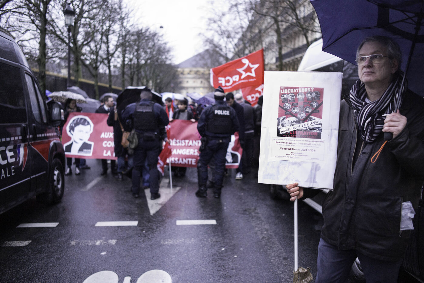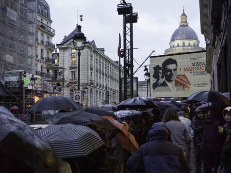 Sous la pluie, le résistant d'origine arménienne Missak Manouchian et son épouse Mélinée, accompagnés par 23 compagnons d'armes, sont entrés mercredi au Panthéon.