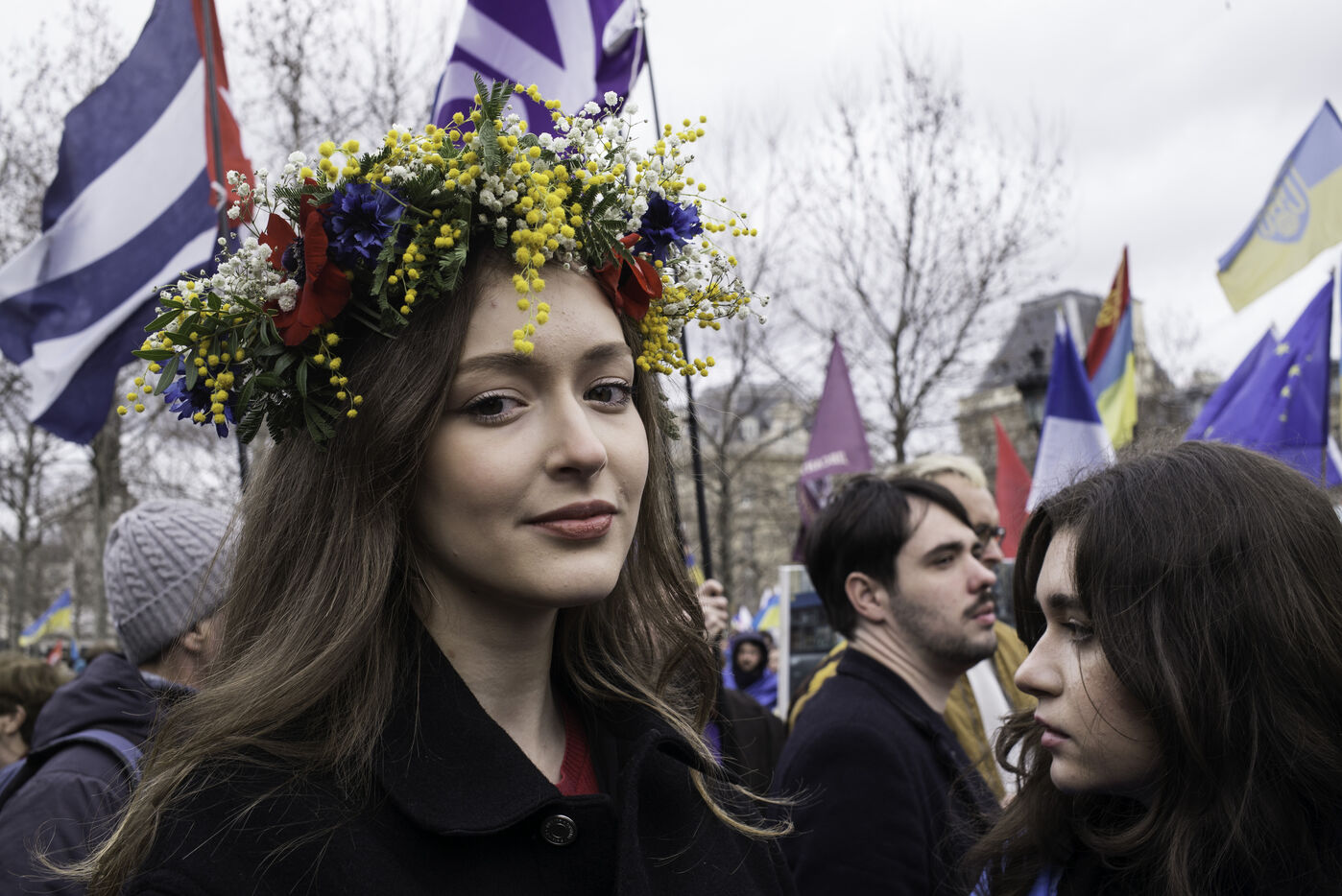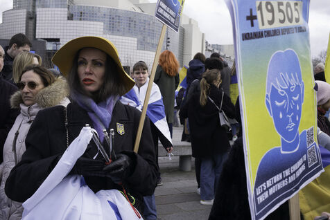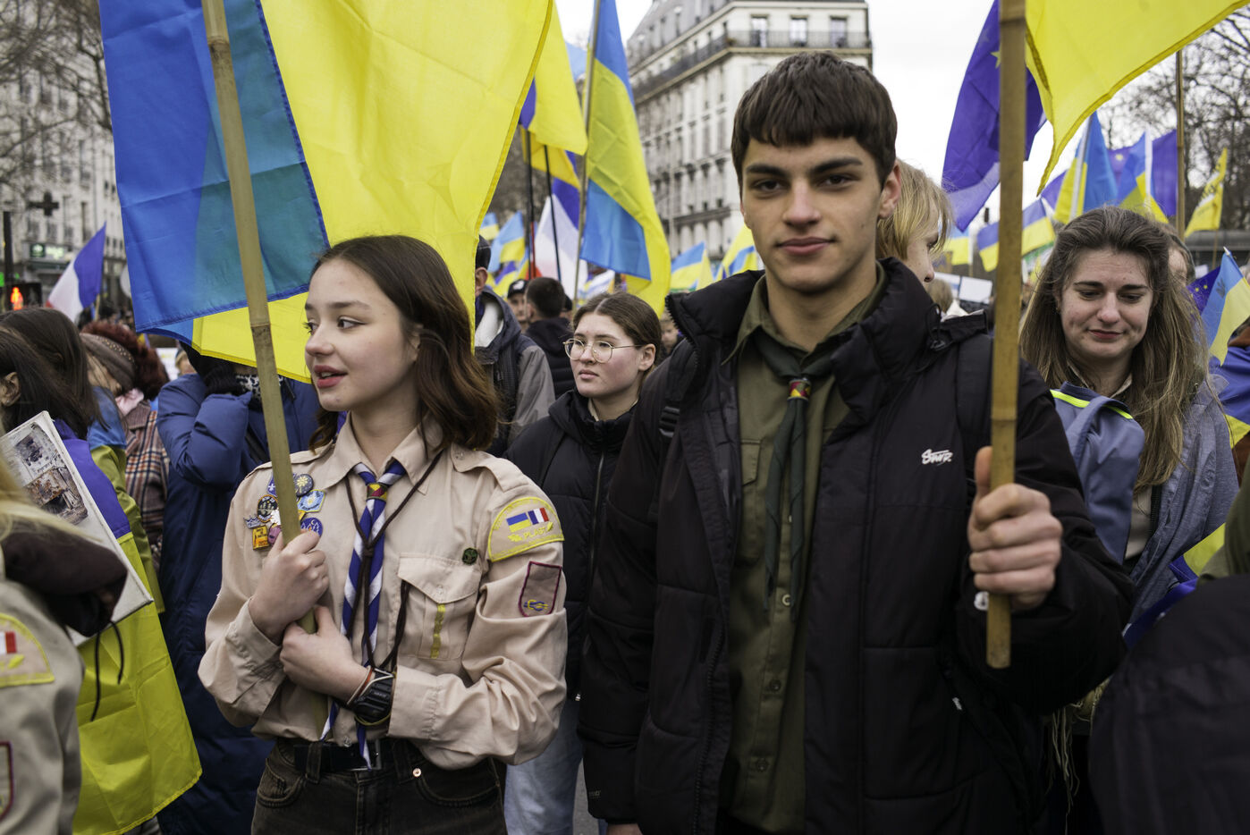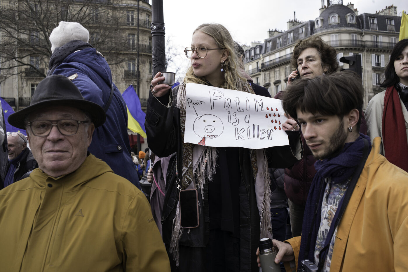 France, Paris, 2024-02-14. For 2 years, Russia has been waging a criminal war in Ukraine. On 24 February, a march through Paris was organised to show solidarity with the Ukrainian people and to denounce the atrocious crimes against humanity committed by Putin and his army. Photograph by Eric Broncard/Hans Lucas.