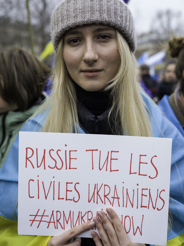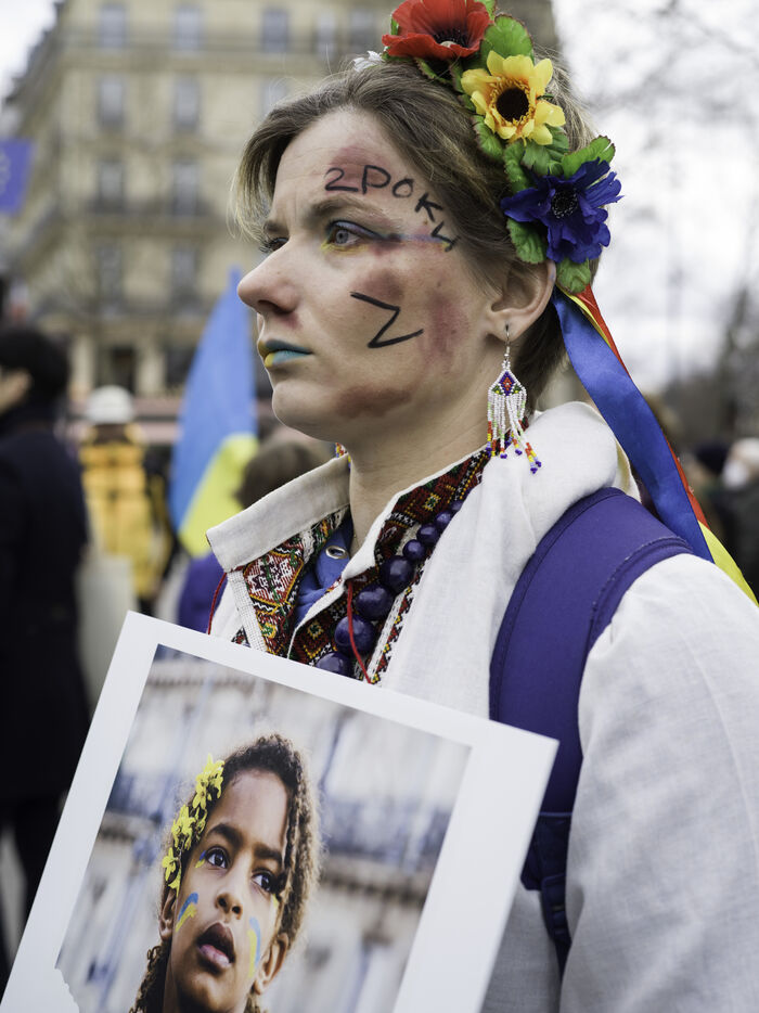 Depuis 2 ans, la Russie a lancé une guerre criminelle en Ukraine. Le 24 février, une marche dans Paris est organisée pour manifester la solidarité avec le peuple ukrainien et pour dénoncer les crimes atroces contre l'humanité commis par Poutine et son armée.