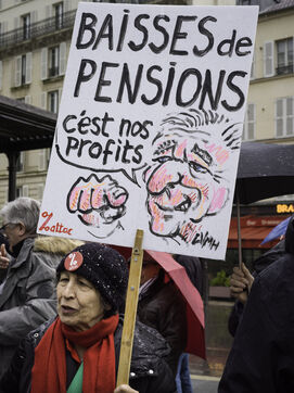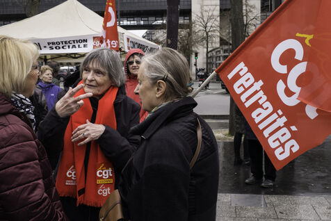 A l'appel des 9 organisations syndicales de retraités, un rassemblement est organisé devant le ministère de l'économie pour une augmentation des retraites suite à une perte de pouvoir d'achat.