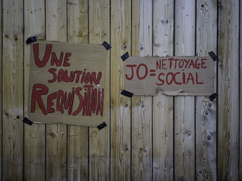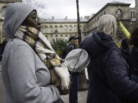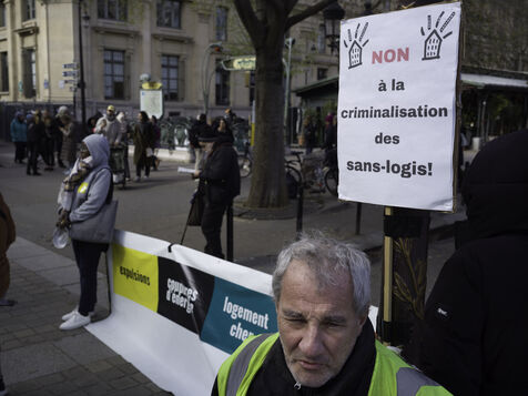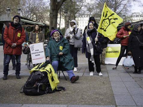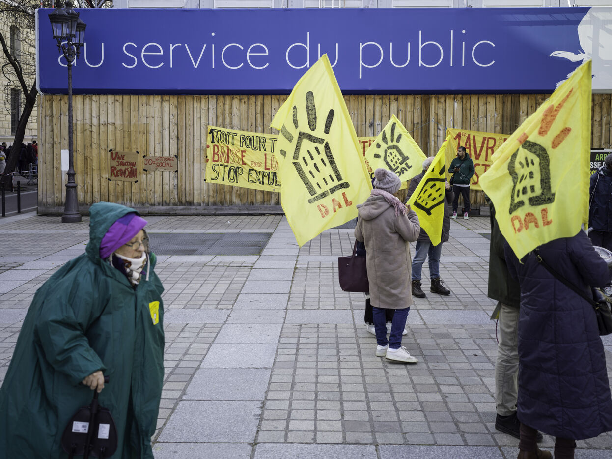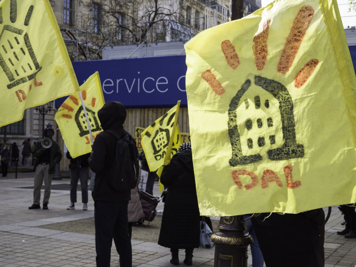 The Droit au logement(DAL) association is demonstrating in front of the Paris police headquarters to protest against evictions linked to the end of the winter strike.
