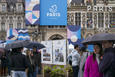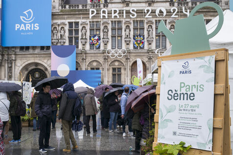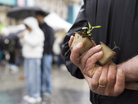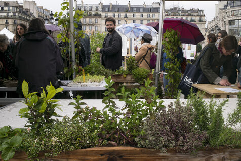 Paris celebrates spring in the rain on Place de l'Hotel de Ville. The City of Paris is distributing seed packets and seedlings of local plants to Parisians who want to help green the city and promote biodiversity in the capital.