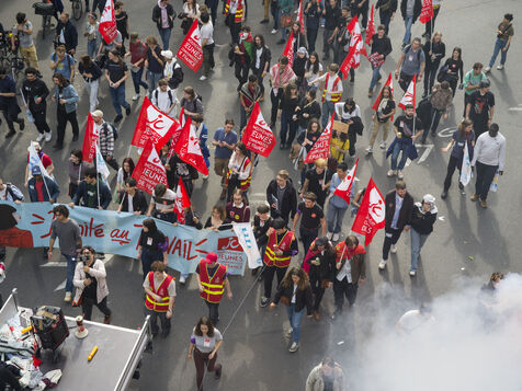 The unions counted 50,000 demonstrators at the Paris Labour Day parade.