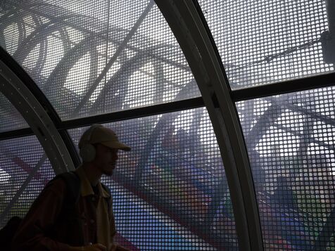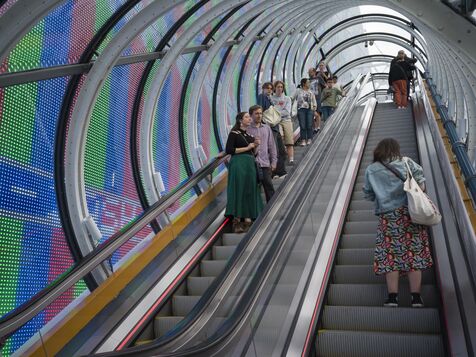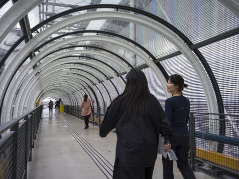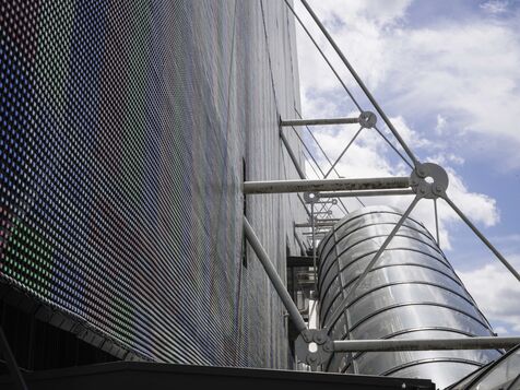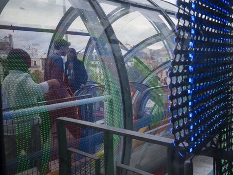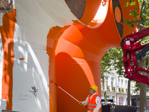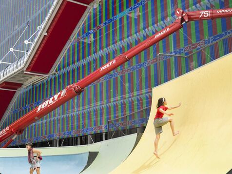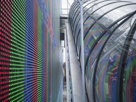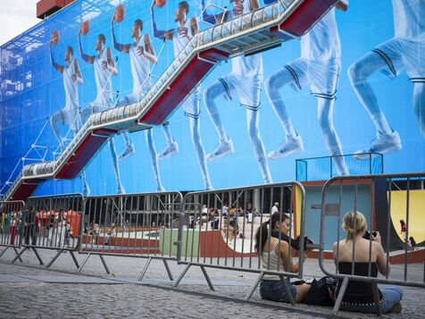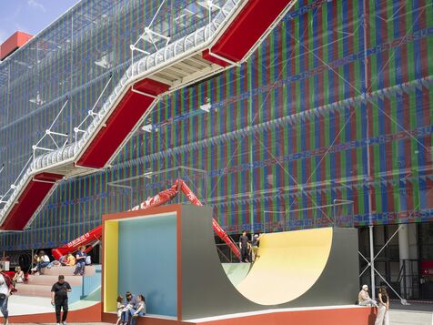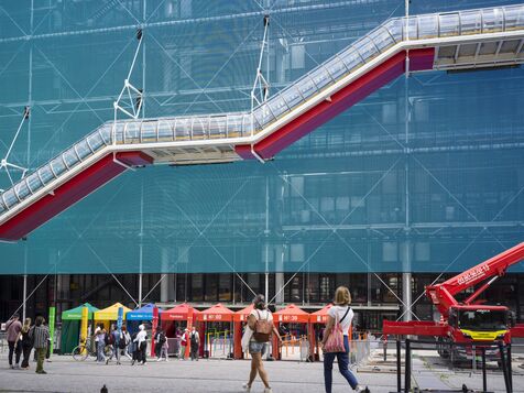 While the museum is due to close in 2025 for five years of renovation work, the façade overlooking the esplanade is clad with a LED advertising screen for the Olympic Games.