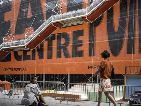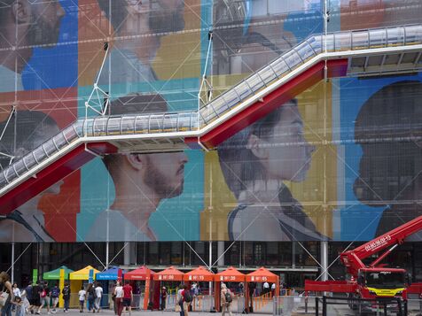 Alors que le musée doit fermer en 2025 pour cinq ans de travaux, la façade donnant sur l?esplanade est habillée par un écran publicitaire à led pour les Jeux Olympiques.