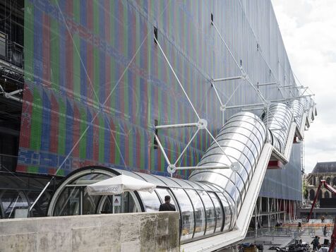 ADVERTISING SCREEN ON THE FACADE OF THE CENTRE GEORGES POMPIDOU FOR THE OLYMPICS