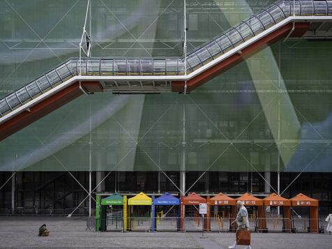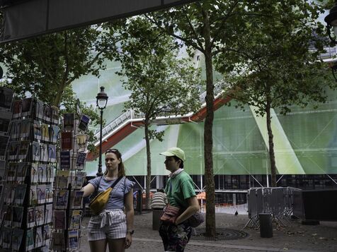 ECRAN PUBLICITAIRE SUR LA FACADE DU CENTRE GEORGES POMPIDOU POUR LES JO