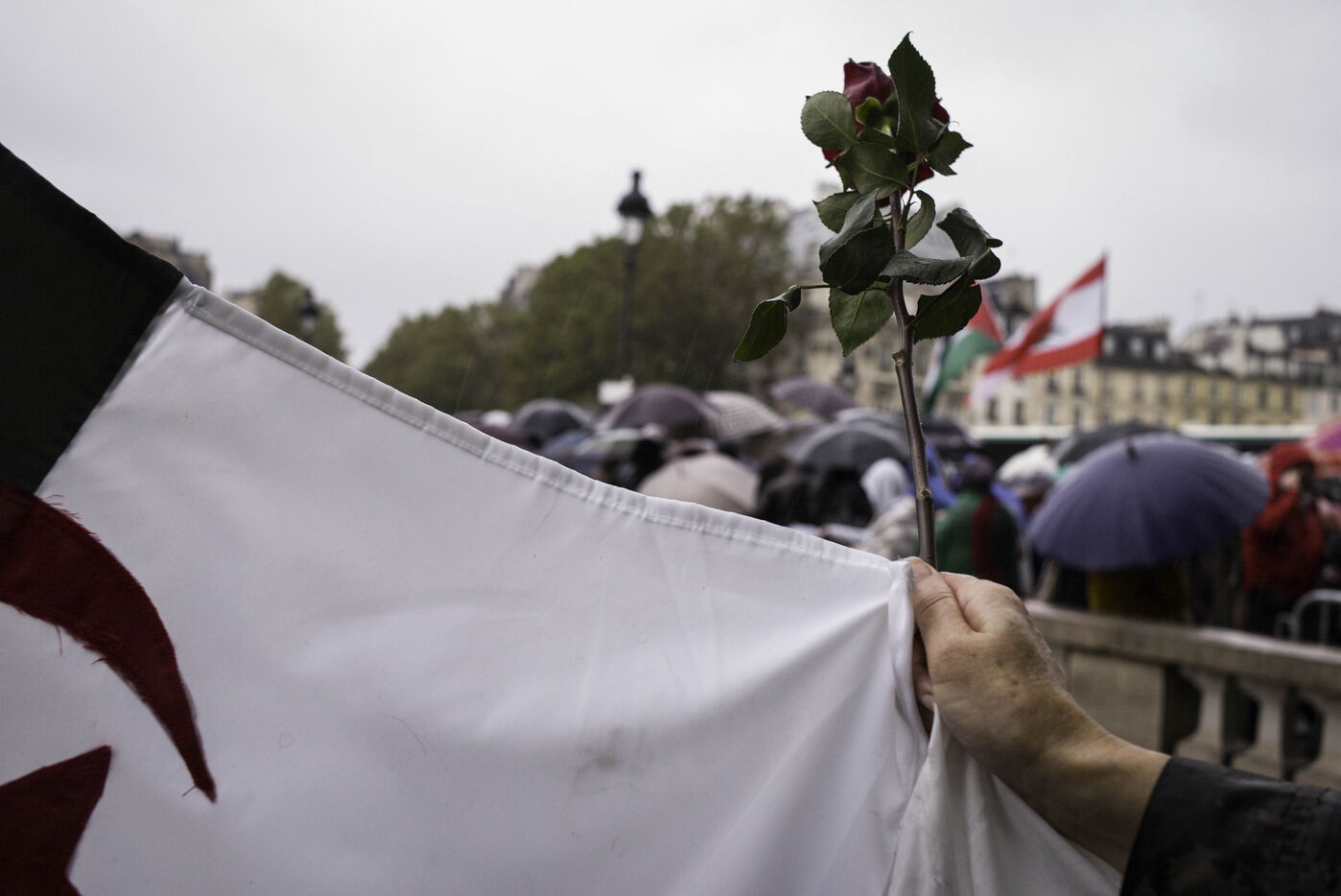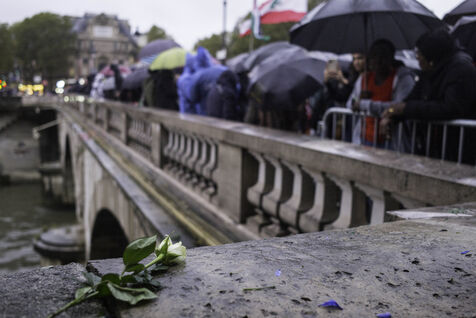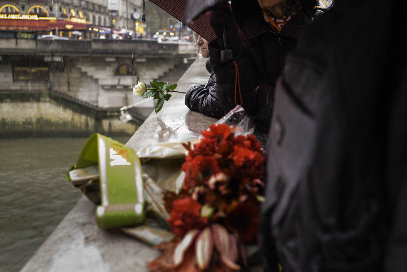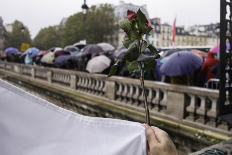 A gathering on the Pont Saint Michel to pay tribute to the Algerians killed and thrown into the Seine on 17 October 1961 under the authority of Prefect Maurice Papon