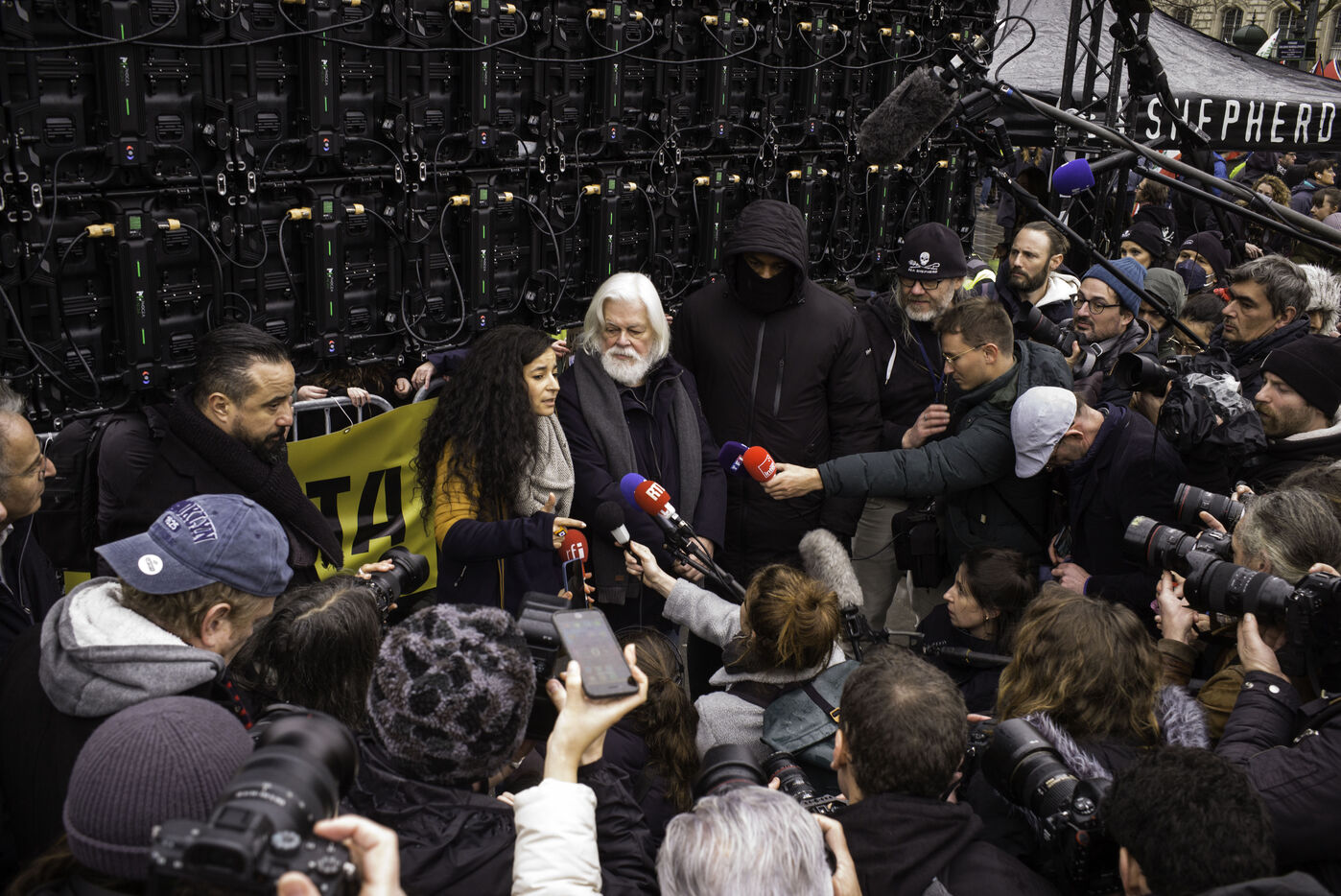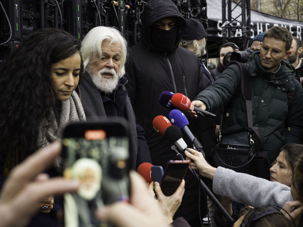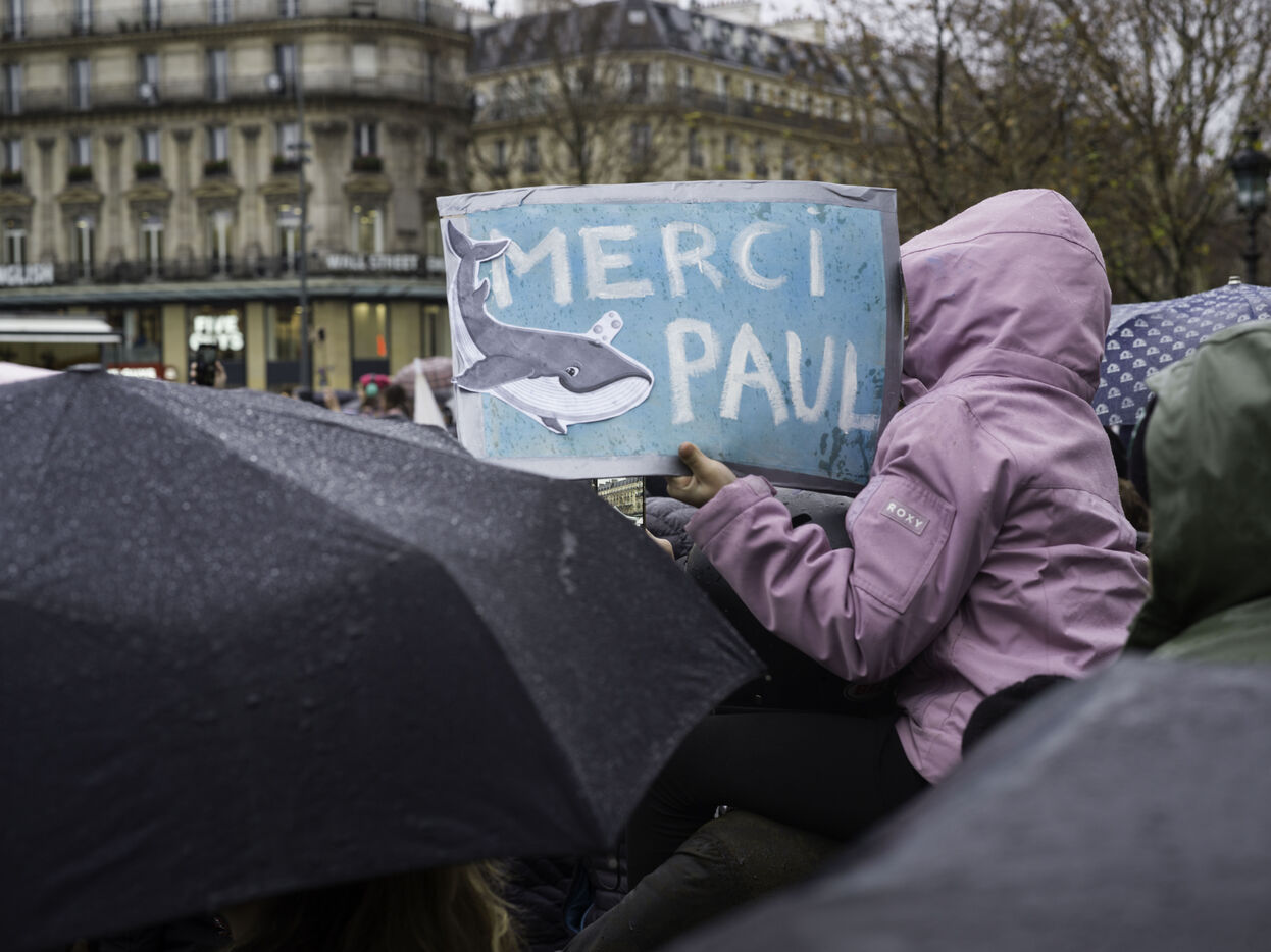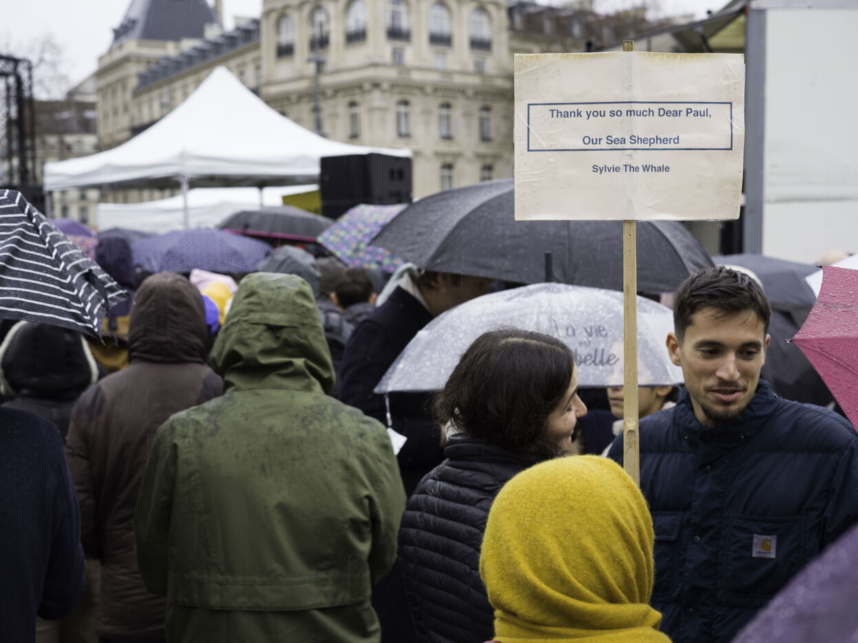 Un rassemblement est organisé sur la place de la République pour fêter la récente libération de Paul Watson, emprisonné au Groenland depuis juillet à la demande du Japon.