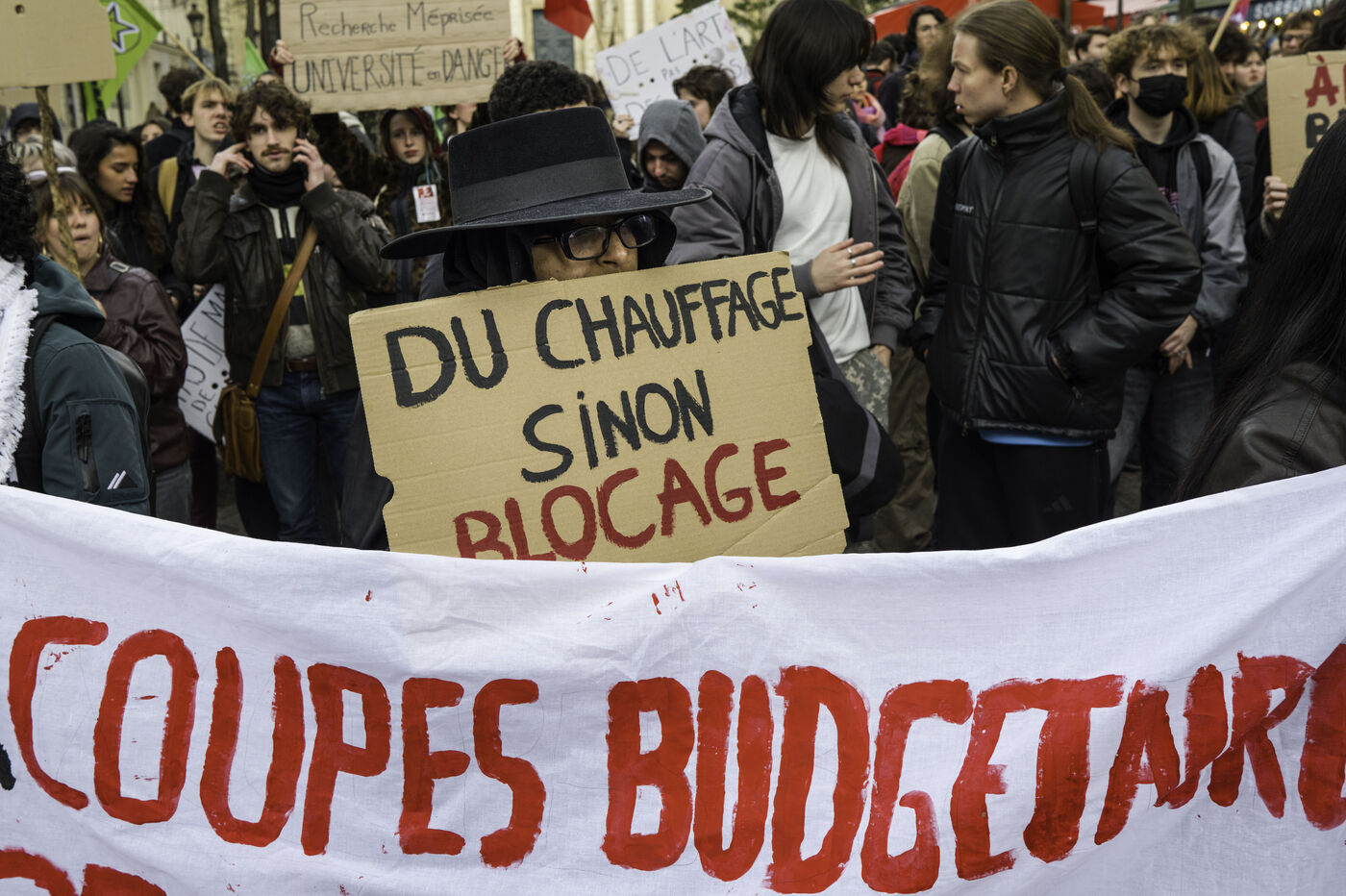 Contre l’austérité du budget dans l’enseignement supérieur et la recherche, une manifestation d’étudiants démarre de la place de la Sorbonne.