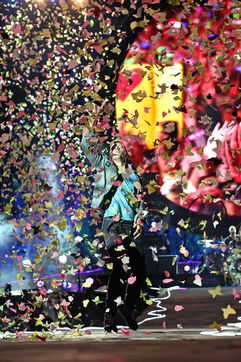Concert du groupe britanique Coldplay, pour la tournee Mylo Xyloto, au stade Charles Ehrmann de Nice, France - Le 22 mai 2012.