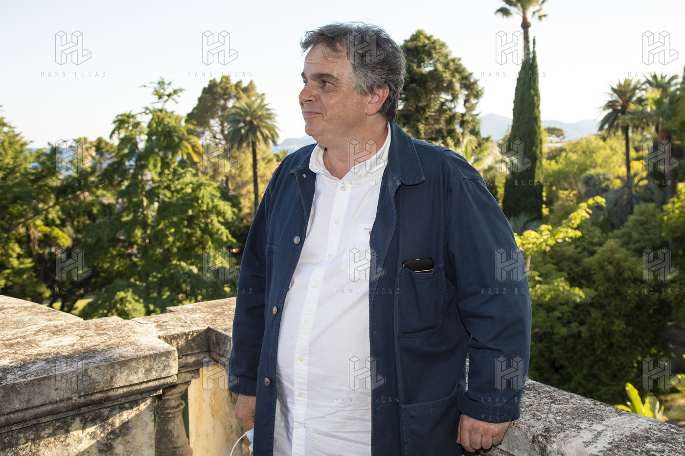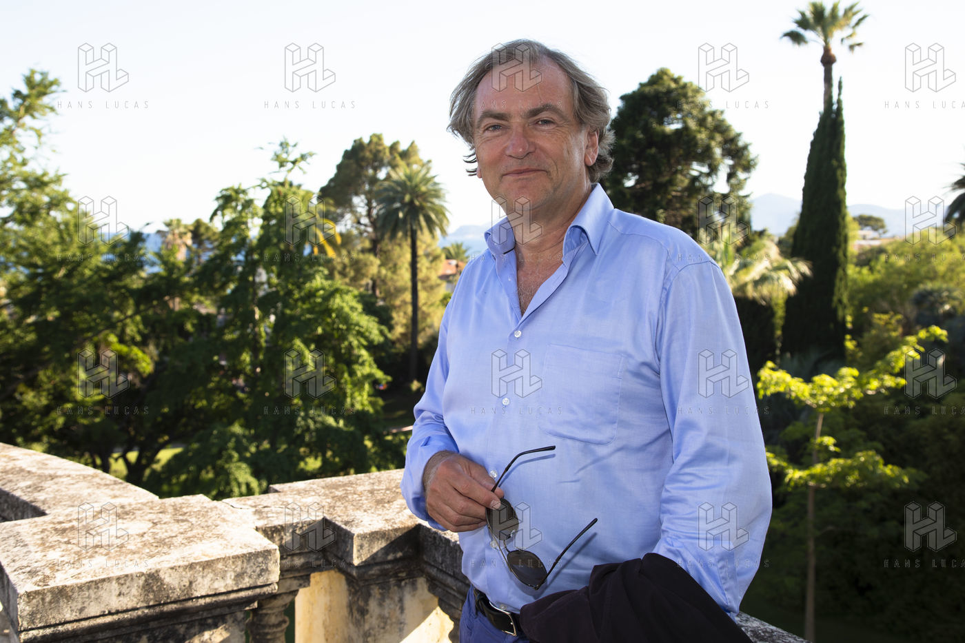 Didier Van Cauwelaert and Alexandre Jardin invited to a literary garden party at the Villa Rothschild in Cannes by the bookstore "Autour d'un Livre" to celebrate the end of government measures which prohibited the sale of books, considered non-essential and present their latest novel.