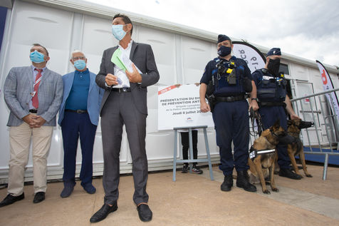 Presentation of dogs trained in the detection of Covid-19 during major events. An unprecedented device from the Cannes town hall as part of the Comete project to fight against the spread of the coronavirus.