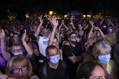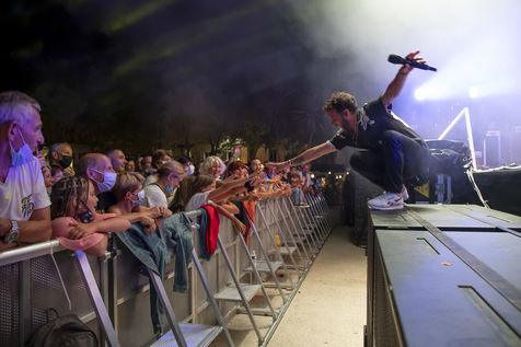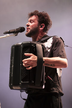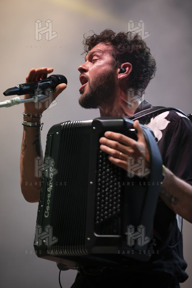 Le chanteur et accordeoniste français d'origine italienne Claudio Capeo se produit sur la scene du festival Nuits du Sud.