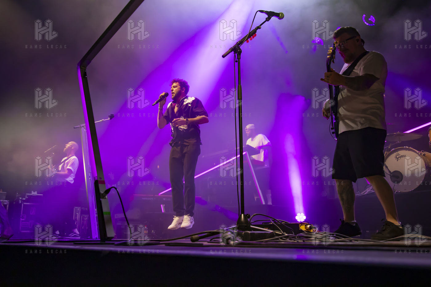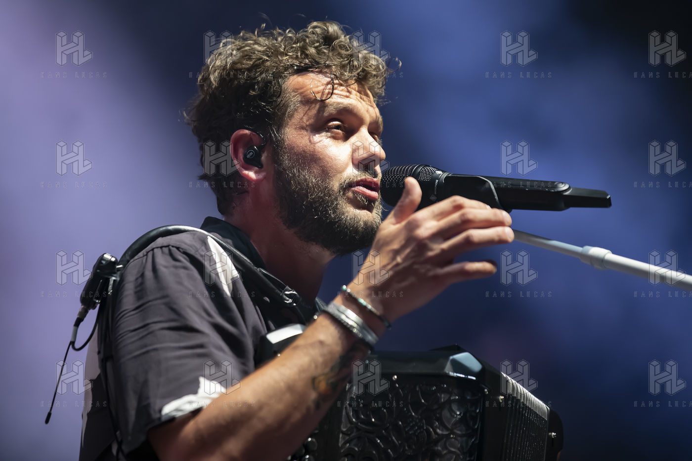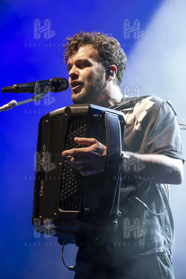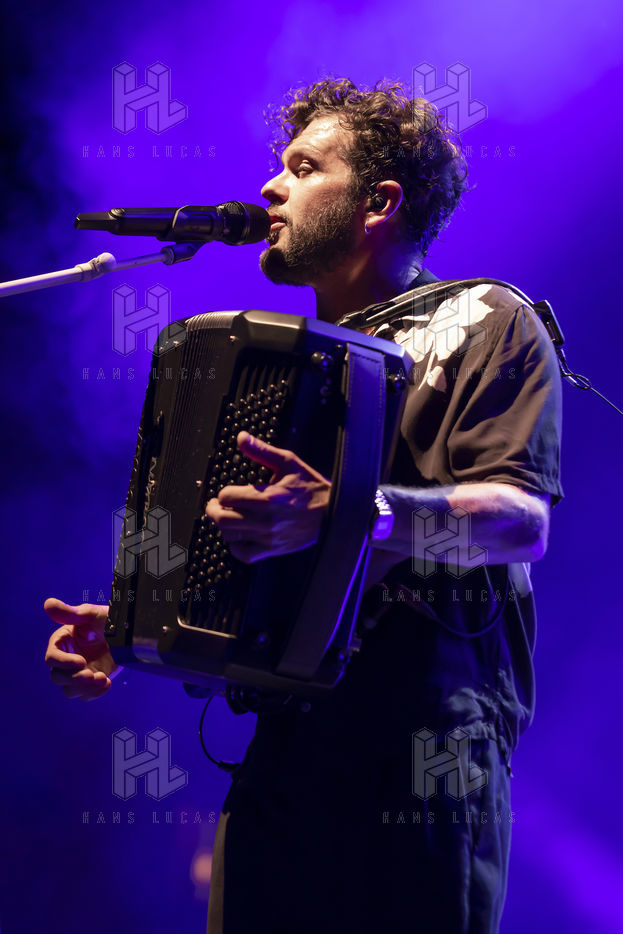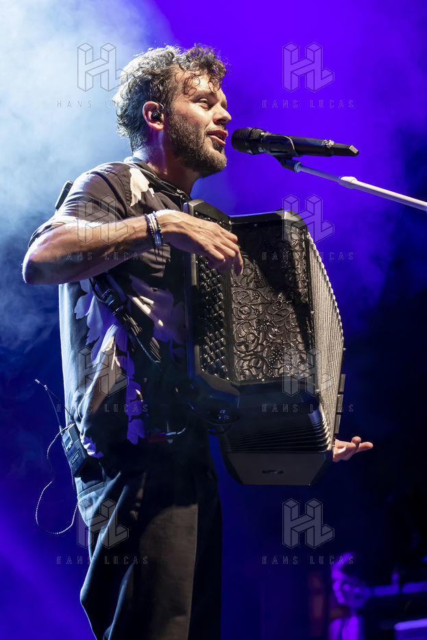 French singer and accordionist of Italian origin Claudio Capeo performs on stage at the Nuits du Sud festival.