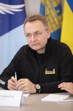Le maire de Cannes David Lisnard reçoit Andriy Sadovyi, maire de Lviv, ville jumelée avec Cannes, lors d une conférence de presse pour faire un point sur la situation en Ukraine, les collaborations prévues entre la France et l Ukraine et évoquer le programme hospitalier "Unbroken", un centre de réhabilitation médicale à Lviv destiné à soutenir et à soigner les victimes de la guerre dans toute l Ukraine.