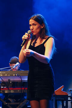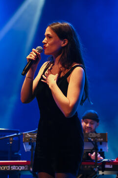 La chanteuse française Clara Ysé se produit sur la scène du MIDEM, le salon de l industrie musicale, au Palais des Festivals de Cannes.