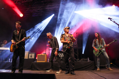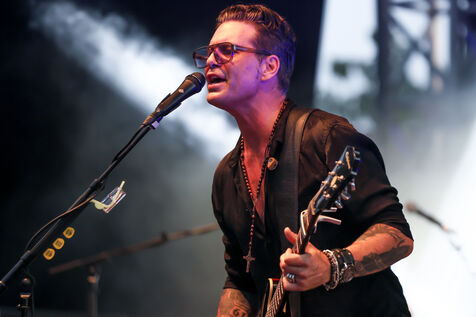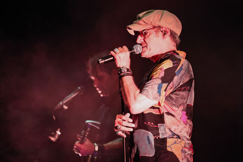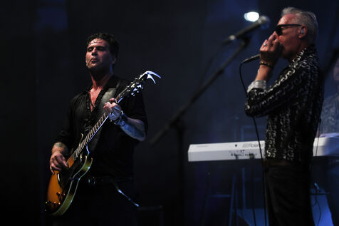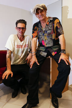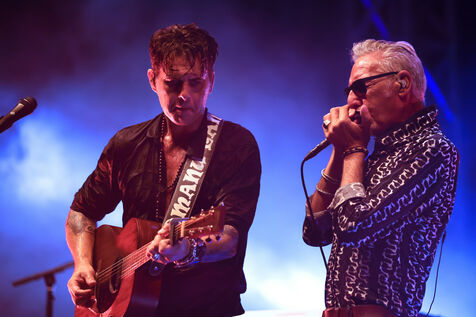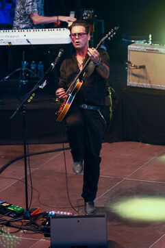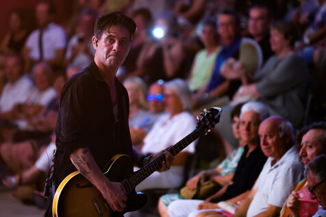 Singer guitarist and composer Manu Lanvin performs on stage at the Robinson Theatre, accompanied by the group The Devil Blues and his father Gerard Lanvin.