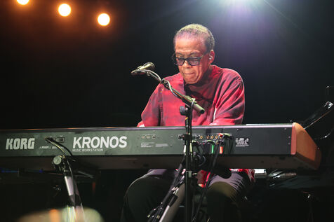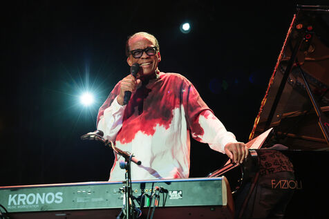 Herbie Hancock, pianiste, clavieriste et compositeur americain de jazz se produit sur la scene du festival Jazz a Juan 2025.