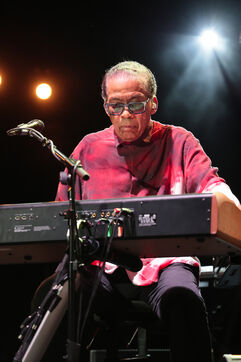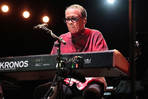 American jazz pianist, keyboardist, and composer Herbie Hancock performs at the 2025 Jazz à Juan Festival.