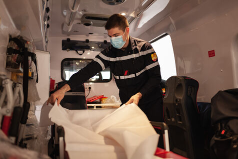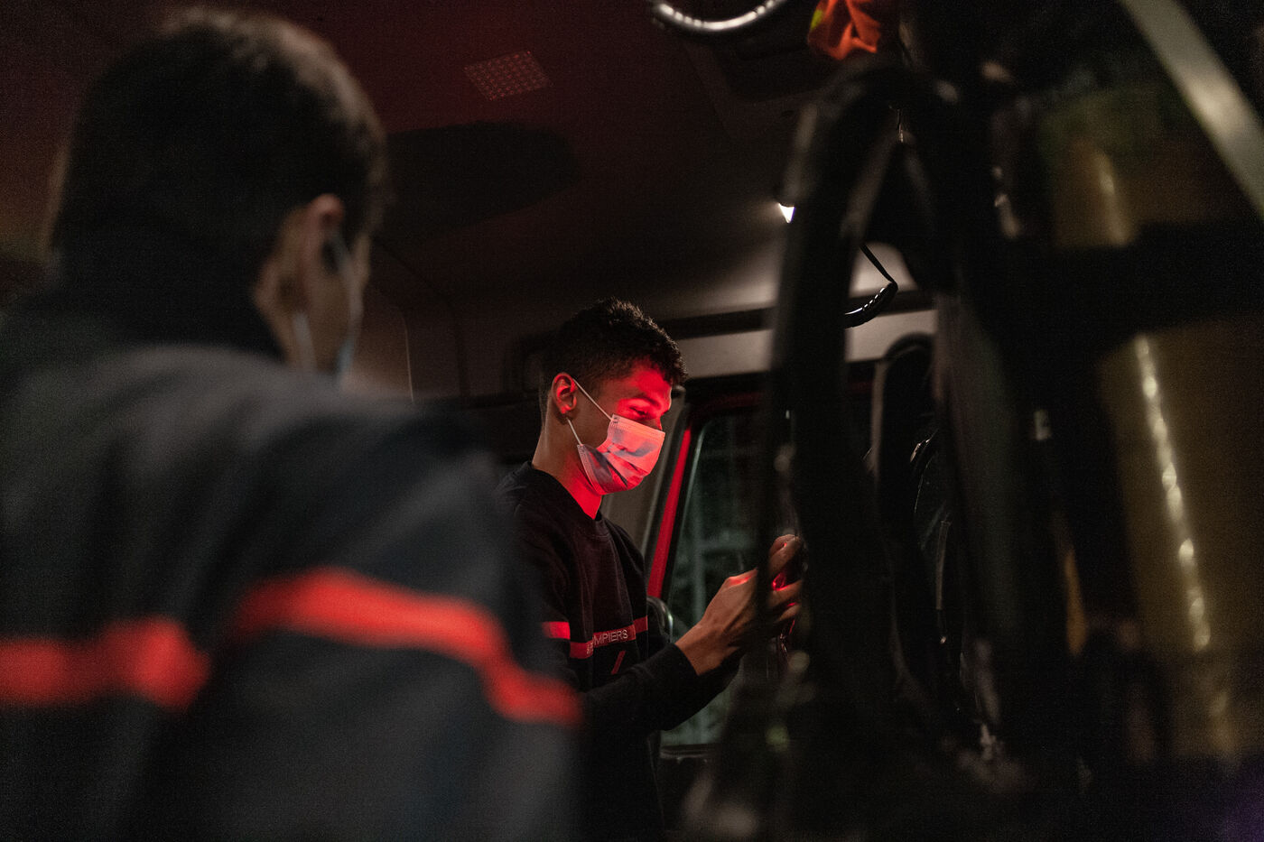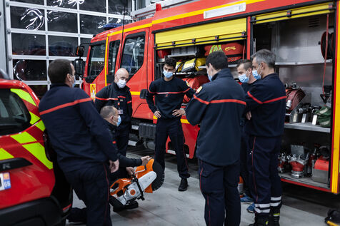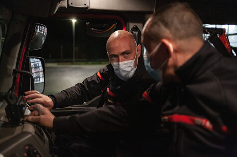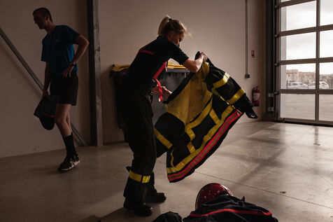 Photo-reportage produced during an "Off the walls" week with EMI's Photojournalism section in March 2021. Immersion for 24 hours with SDIS 66 volunteer firefighters at the Toulouges fire station near Perpignan (Pyrénées-Orientales).