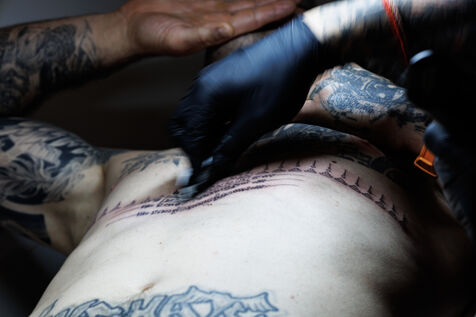Pride is what Jeremy exudes. The 34-year-old French-Cambodian, who grew up in the Val d'Oise county just outside Paris, is one of only a handful of Sak-yant tattoo artists in France. This form of tattooing, believed to offer protection to its wearer, has its origins in Southeast Asia, particularly Cambodia, where Jeremy is originally from. While still a student, he befriended a tattoo artist and became his apprentice when he finished his studies in 2013. After a year of classical tattoo training, he specializes in Sak-yant, guided by his Buddhist faith. Initiated by monks, friends of his family, he completed his apprenticeship in Siem Reap province, Cambodia, with master tattoo artists. Several times a year, he invites monks into his tattoo parlour to perform the traditional blessings intended to bring protection to tattoo wearers. Proud of the heritage passed down by his father and grandfather, Jeremy often returns to Cambodia and is even thinking of retiring there. But for the time being, he still tattoos in his salon in the 2nd arrondissement, where the waiting list can reach several months. Last but not least, he is actively involved in the "Fragments KH50 project", a documentary film as well as a monument which, in 2025, will commemorate the 50th anniversary of the Khmer Rouge genocide and the strong link between France and Cambodia.