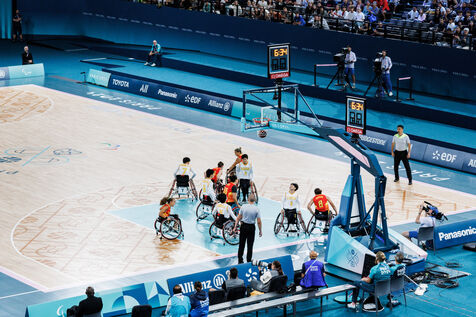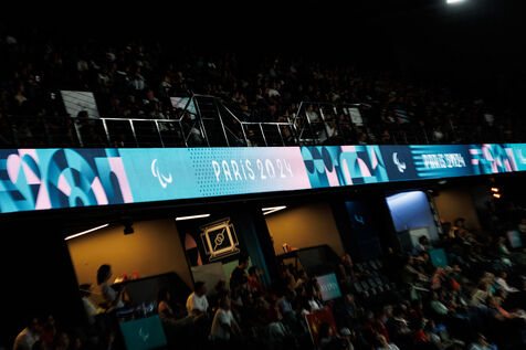 Images taken during the women's hanidbasket match between China and Spain at Arena Bercy on August 30, 2024 and during the swimming night at la Defense Arena on September 2, 2024 at the 2024 Paralympic Games in Paris.