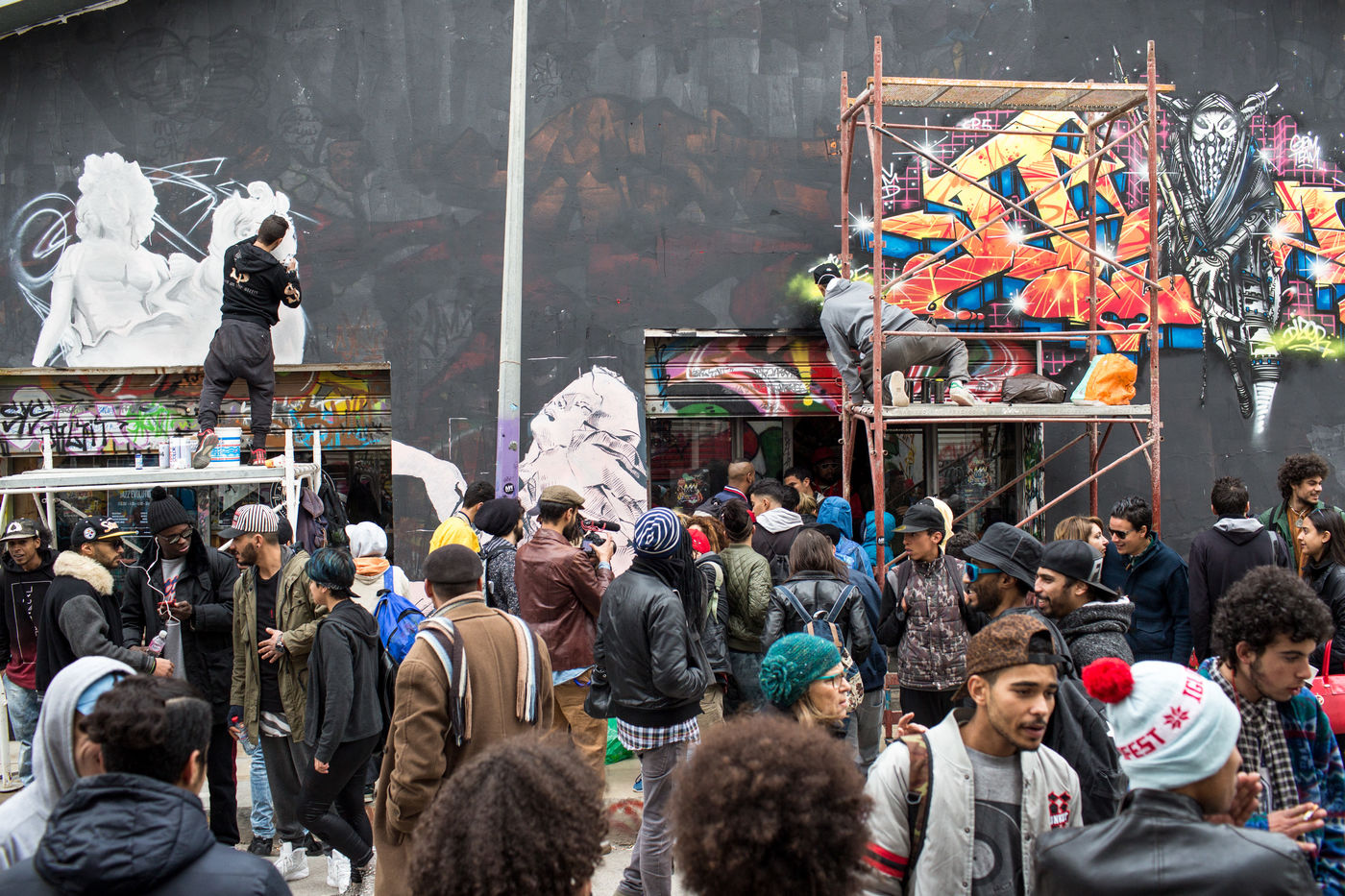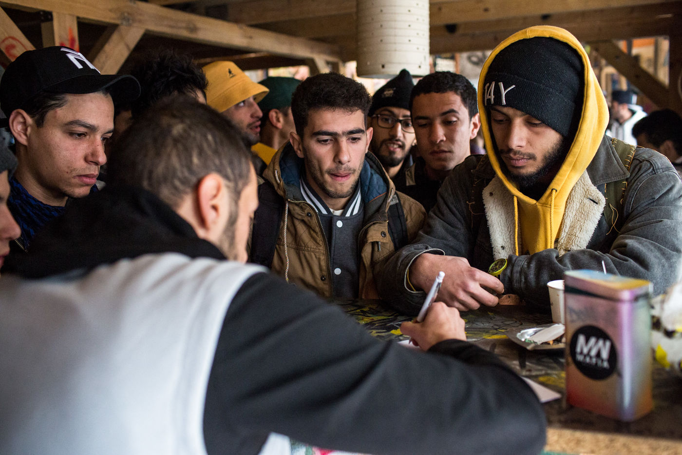On the festival's opening day, the crowd is packed along the entire block, talking, tagging and waiting to sign up for the different workshops. Those who participate said they will keep practicing their art of dancing, graffiti and DJing at all cost. « It gives a lot of hope to the youth » says Chouaib Cheu, the host of the festival and one of the first hip-hop dancer in Tunisia. For the last 4 years, he has played an important role in coaching young talents and spreading hip-hop knowledge in his country. His association « Art Solution » has also served as an important bridge between people from particularly rough neighborhoods and the established hip-hop community.