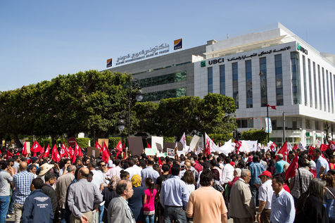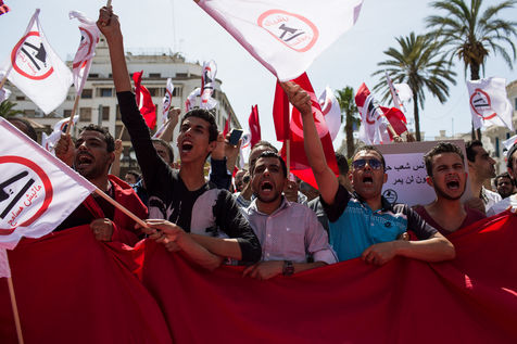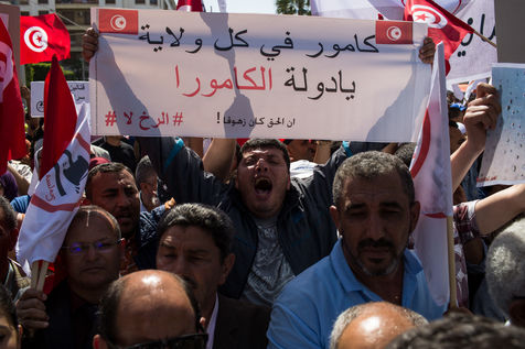 Protesters during a demonstration against the law project of economic and financial reconciliation proposed by the president Beji Caid Essebsi.