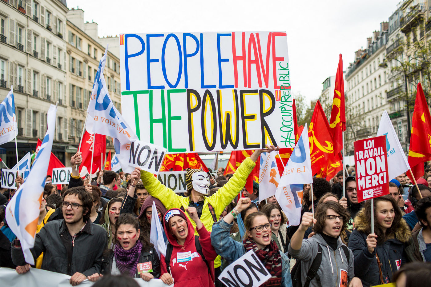Nuit debout est un ensemble de manifestations sur des places publiques en France, ayant commencé le 31 mars 2016 à la suite d'une manifestation contre la « loi travail ». Ce mouvement social est pluriel et propose de construire une « convergence des luttes ». Sa revendication initiale, le refus de la loi travail, s'élargit à la contestation globale des institutions politiques et du système économique. Sans leader ni porte-parole, Nuit debout est organisé en commissions où les prises de décisions se font par consensus lors d'assemblées générales. Ce reportage illustre le début de la lutte entre avril et septembre 2016 à Paris. La plupart des photos ont été prises sur la place de la république au cours des assemblées quotidiennes et pendant certaines manifestations.