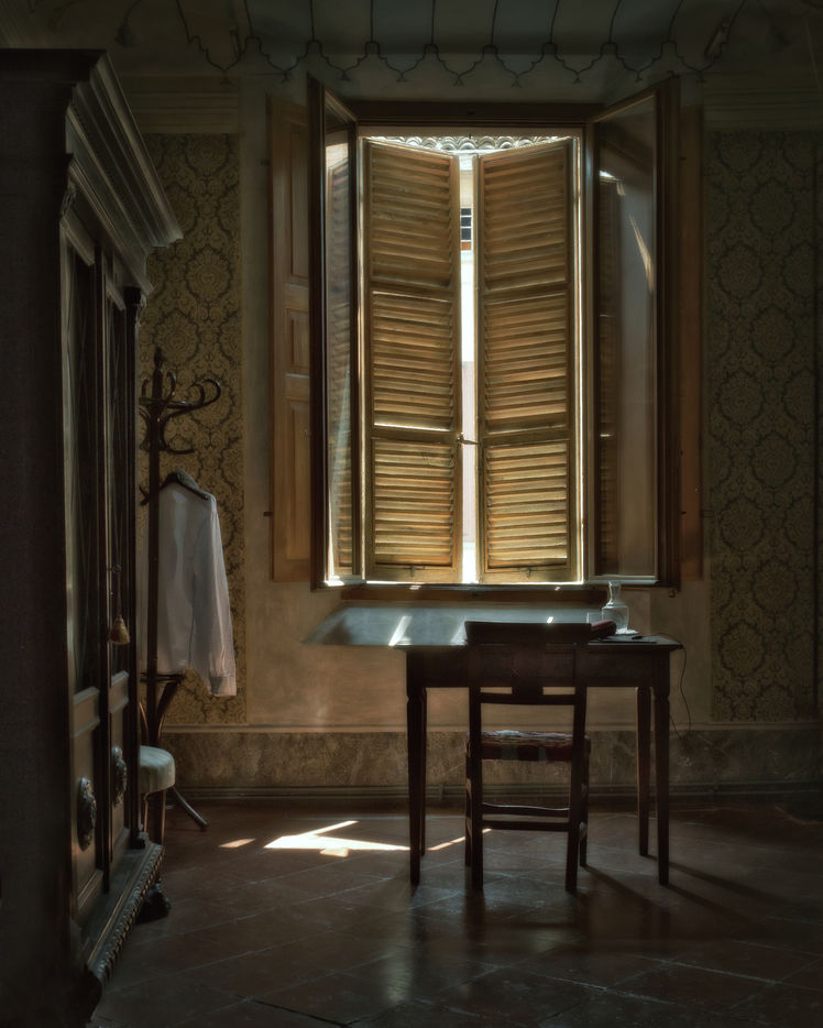 Rechercher le calme dans l'obscurité, quand un filet de lumière dévoile les contours d'une pièce où la vie se joue, entre absence et regrets ...