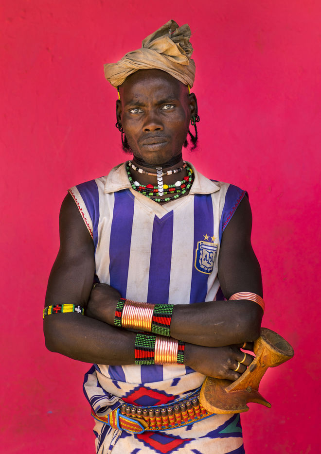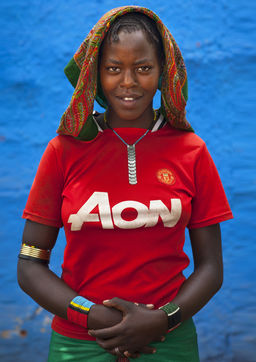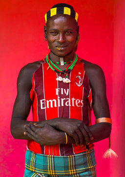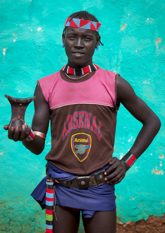 Thousands of Football shirts of Arsenal, Manchester, Chelsea, Milano, etc end up their carreer in... Ethiopia. Sold in the deep south, in the Omo Valley, those second hand clothes are bought by the local tribes. Most of them ignore the meaning of those shirts, and just buy them for the color, the logo, or the shape. Those tribes won?t exist in few years as the ethiopian governement has launched a huge plan to develop the area. Soon, a highway coming from Mombassa - Nairobi will pass thru the villages to reach Addis Ababa.