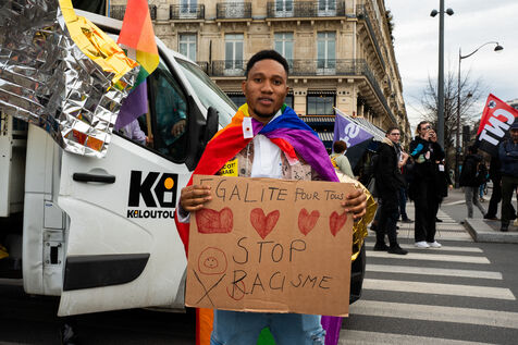 Reportage shot in Paris on March 22 2025 during the World Day Against Racism and Fascism. The demonstration, organised by antiracist and antifascist collectives, aimed to denounce systemic discrimination and advocate for equal rights.