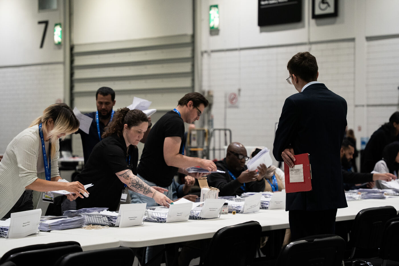 On the night of the UK general elections on 4 July 2024, I documented the vote count for the borough of Tower Hamlets at the ExCeL Centre in London. Normally hidden from public view, this behind-the-scenes process revealed both the logistical complexity and the emotional intensity of an election night. From the arrival of ballot bags to the official announcements, the space filled with staff, party members, journalists and candidates — all navigating anticipation, fatigue, and tension. This series offers a visual record of that long night, where democracy is measured one paper at a time.