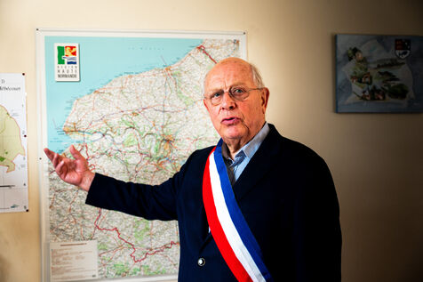 Portrait de François Letierce, maire d’Hébécourt (Somme), commune rurale de 650 habitants, photographié dans la mairie le 23 avril 2025. À 79 ans, ce chef d’entreprise et agriculteur, également engagé dans l’enseignement privé et la gestion d’un syndicat d’eau, achève son quatrième mandat. "Je considère que c’est une mission. On ne peut pas aller à la messe sans agir." Après 43 ans d’engagement municipal, il prépare sa succession : "Il faut savoir passer la main."