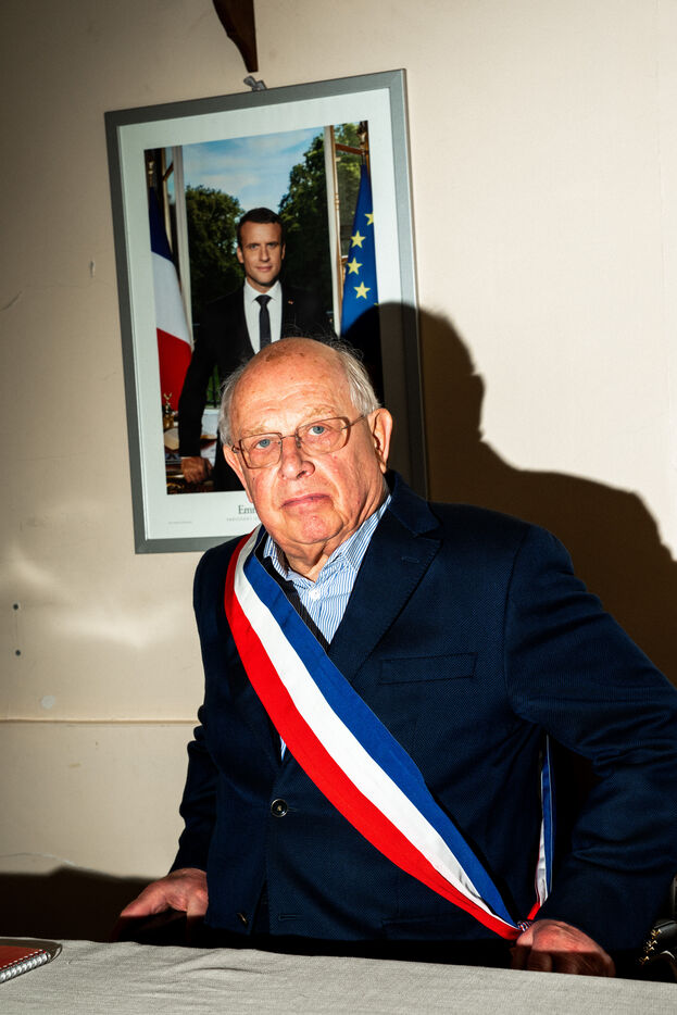 Portrait of François Letierce, mayor of Hébécourt (Somme), a rural village of 650 inhabitants, photographed inside the town hall on 23 April 2025. At 79, this entrepreneur and farmer, also involved in private education and managing a local water syndicate, is completing his fourth term. “I see it as a mission. You can’t just go to mass and not act.” After 43 years of municipal service, he is preparing to hand over: “You have to know when to step aside.”