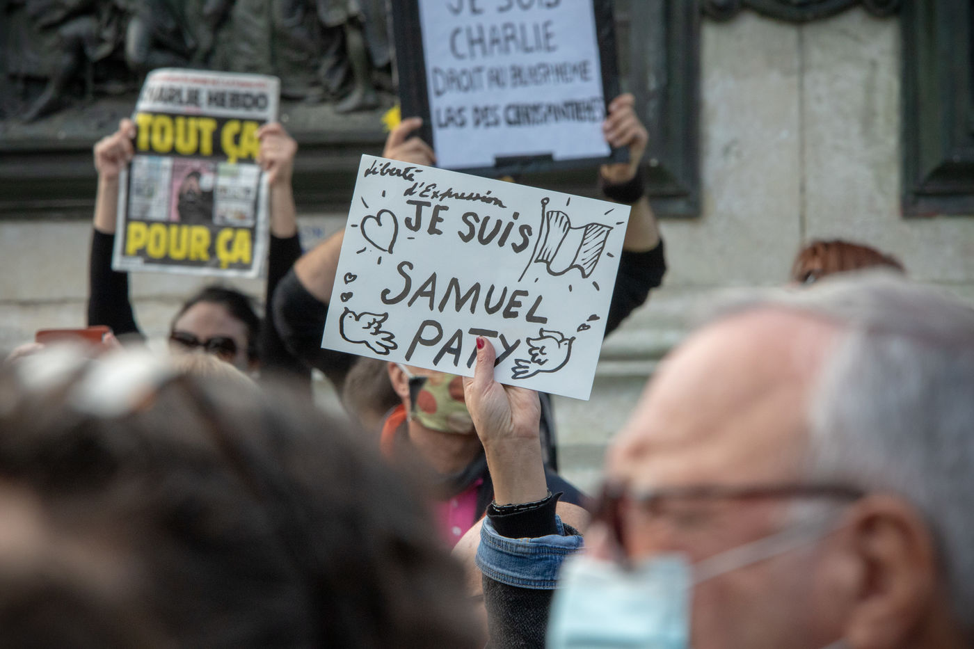 Tens of thousands of people gathered, at the call of teachers' unions and associations, as well as Charlie Hebdo, this Sunday, October 18, in Paris, in homage to Samuel Paty, the teacher assassinated Friday in Conflans-Sainte-Honorine (Yvelines) for having shown his students caricatures of Mohammed, an Islamist attack that plunged the country into turmoil.
