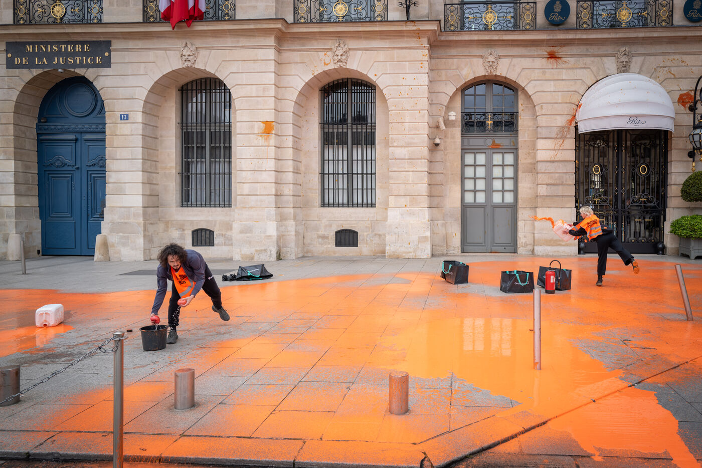 On this Monday, May 1st, activists of the last Renovation repainted the façade of the Ministry of Justice and the RITZ hotel in Place Vendôme to denounce tax evasion and climate inaction.