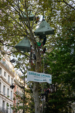 Thomas Brail s'est installé dans un arbre, perché en face du ministère de la transition écologique. Il a entamé une grève de la fin pour obtenir l'arrêt du projet de construction de l'A69.