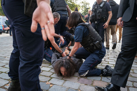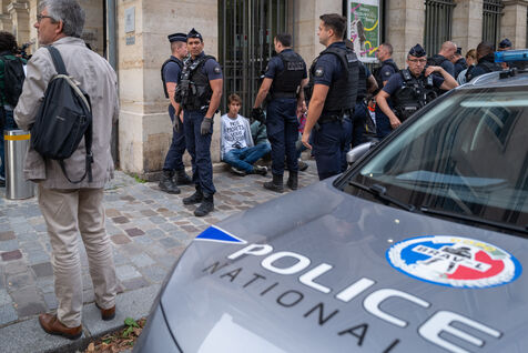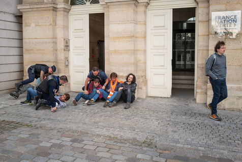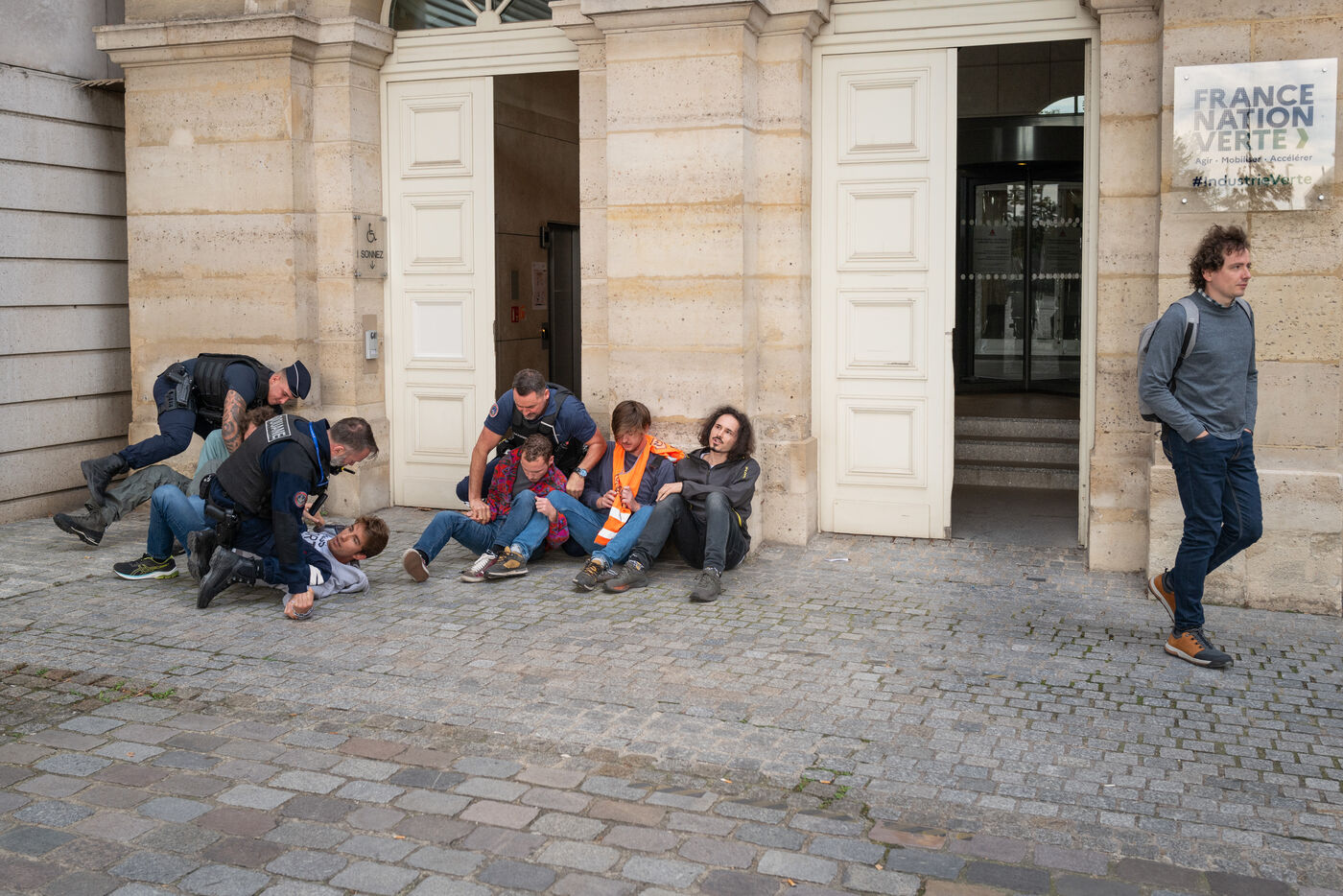 Dernère Rénovation activists attempted to block the entrance to the Ministry of Economy and Finance at Bercy on Wednesday. They were quickly arrested by the police