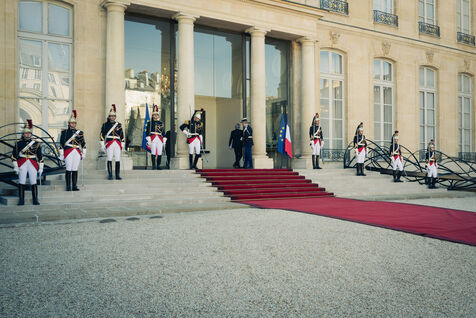 Frederik X and Mary received at the Élysée Palace for a State visit