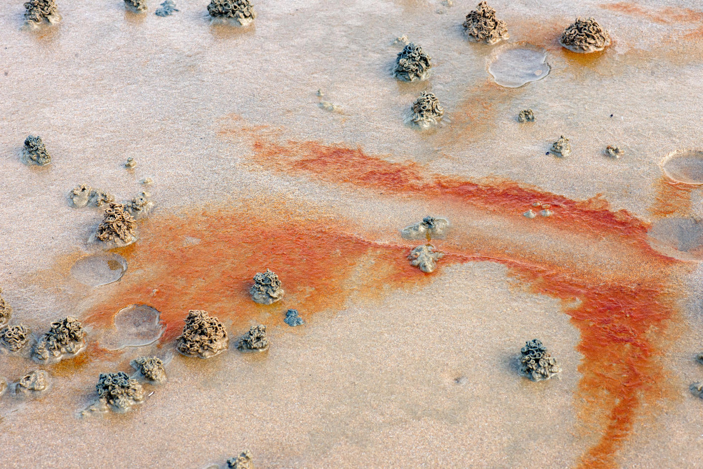 One can observe long rusty streaks, others oily, flowing towards the sea, west of the works in progress of RTE, for the wind site IBERDROLA.