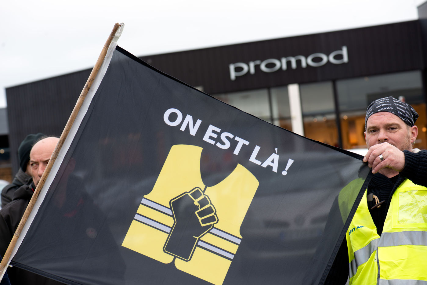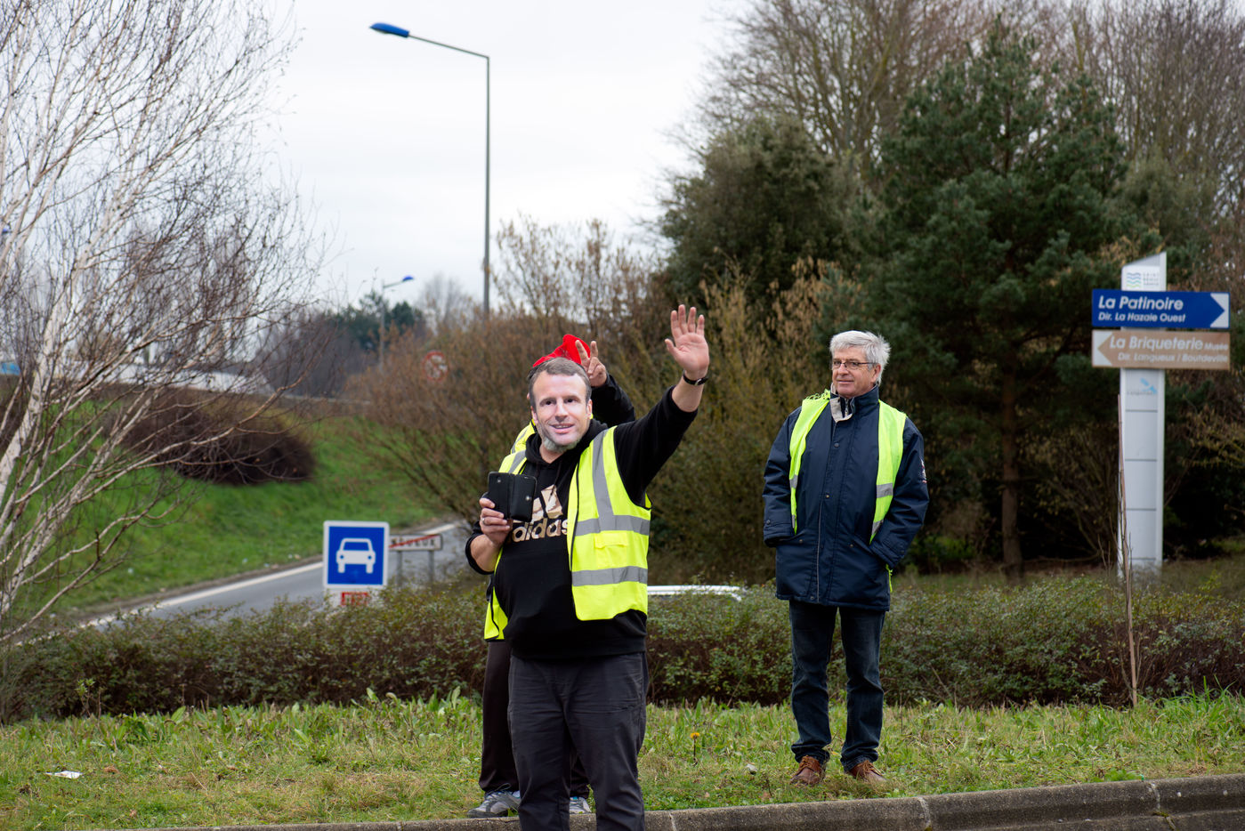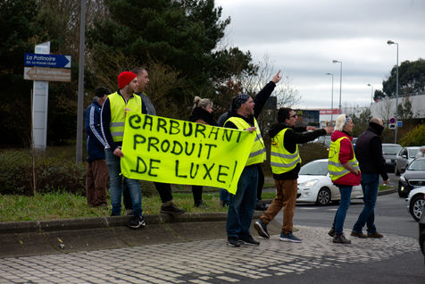 Action of some yellow vests on a traffic circle in Saint-Brieuc, against the increase in fuel prices.