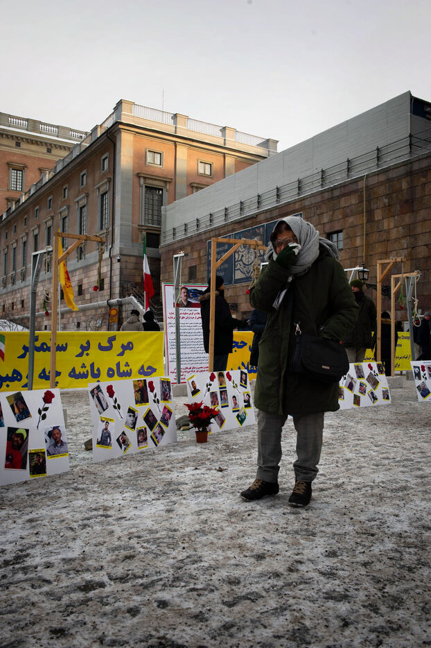 Différents collectifs de solidarité avec le peuple iranien réagissent à travers le monde - ici à Stockholm - dans le contexte d'une révolte engagée mi-septembre en Iran contre les exactions de la police tous azimut.