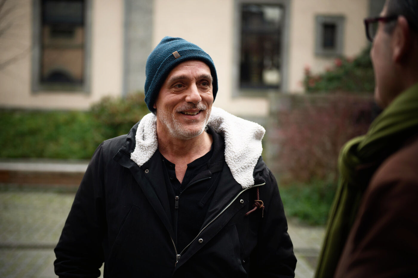 Visite de Philippe Poutou, ex candidat à la présidentielle, à Saint-Brieuc en Bretagne, à l'invitation du NPA local et de LFI, pour une projection-débat au Campus universitaire Mazier de son documentaire "Il nous reste la colère".