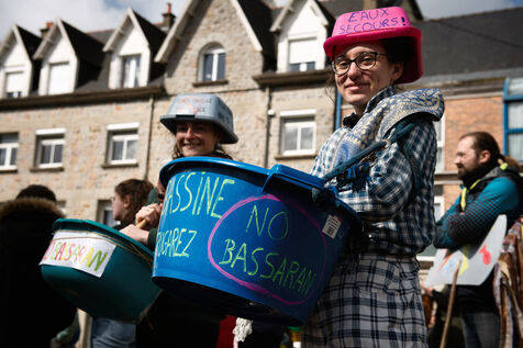 Carnival evoking local struggles: offshore wind turbines, salmon factory, green algae ... but also the mega-pools of Sainte Soline.