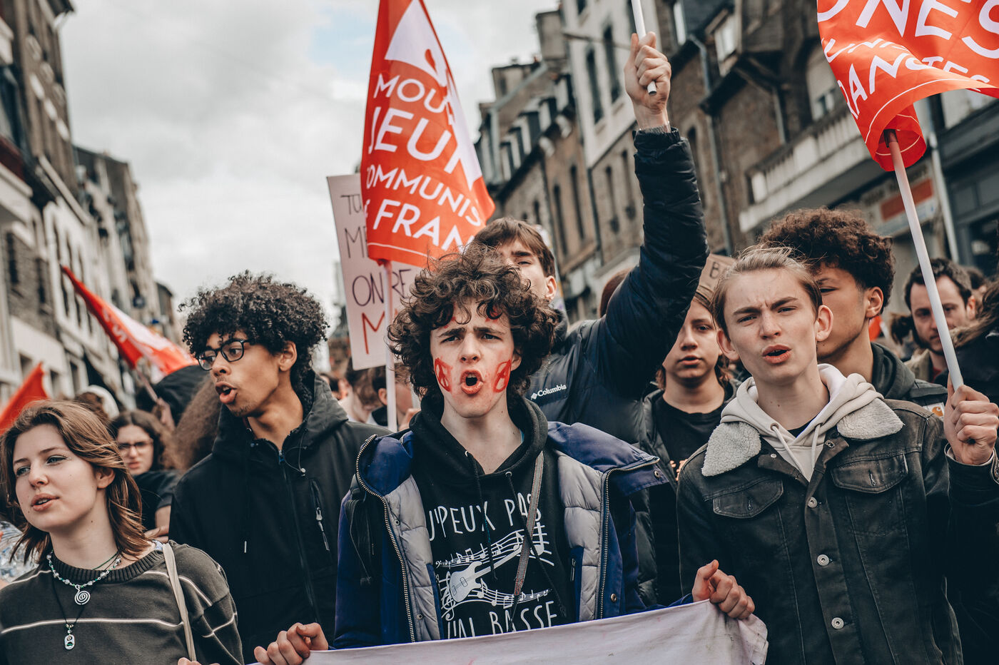 11ème journée de manifestation et grève contre la réforme des retraites et focus sur le cortège lycéen, uni plus que jamais car fédéré par la CGT et militants libertaires. Des images de la manifestation de Sainte-Soline et un texte, ainsi qu'un rappel des morts suite à une intervention policière, ont fait l'objet d'un collage sauvage sur le parcours de la manifestation.