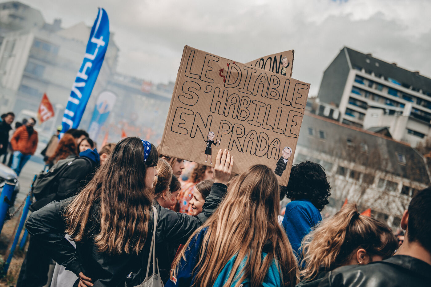 11th day of demonstration and strike against the pension reform and focus on the high school march, united more than ever because federated by the CGT and libertarian militants. Pictures of the demonstration of Sainte-Soline and a text, as well as a reminder of the deaths following a police intervention, were the object of a wild collage on the course of the demonstration.